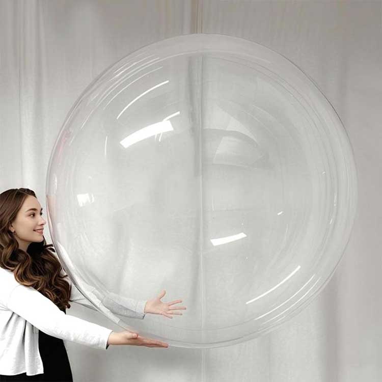 Baloanele Bobo rotunde transparente de 48 inch se pot adapta la diferite medii. Când sunt asociate cu 10 șiruri de lumină LED și umplute cu heliu, pot crea un efect de iluminare. Aceste baloane pot fi folosite pentru expoziții comerciale pentru a realiza un marketing de precizie; pot fi folosite si pentru a umple petrecerile copiilor cu spuma colorata sau petale de pene. o nuntă recentă, au fost folosite 100 de baloane cu bule transparente rotunde de 48 de inci personalizate și au fost laude.