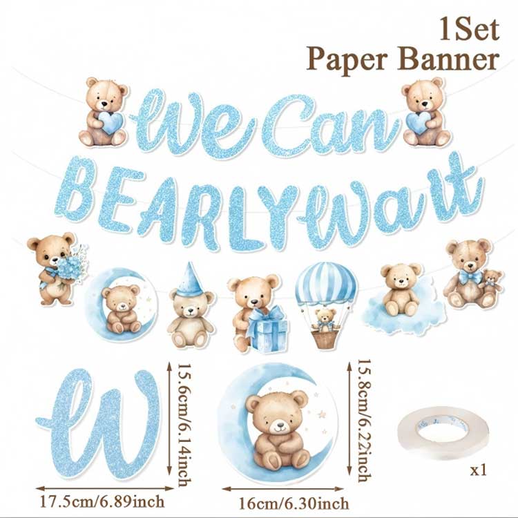 Banner ziua de nastere: 1 banner/set, cu 2-3 frânghii pentru agatat decor; imprimat cu „La mulți ani” sau „Bine ați venit”. Text cu tematică pentru bebeluși