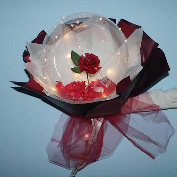 Baloanele BOBO își pot menține forma timp de aproximativ o lună după umflare. Trandafirii artificiali sunt rezistenti si pot fi folositi ca decoratiuni de mobilier. Luminițele sunt detașabile și pot fi folosite pentru iluminarea încăperii. Indiferent dacă conduceți o florărie fizică, un magazin de cadouri sau un magazin de bijuterii, sau chiar o tarabă într-un parc sau loc de joacă, seturile de trandafiri cu baloane BOBO sunt cele mai bine vândute produse excelente. Trandafirii iluminați sunt foarte atractivi pentru clienți, oferind un mare raport calitate-preț și aducând multe amintiri frumoase și valoare emoțională, făcându-i cea mai bună alegere.