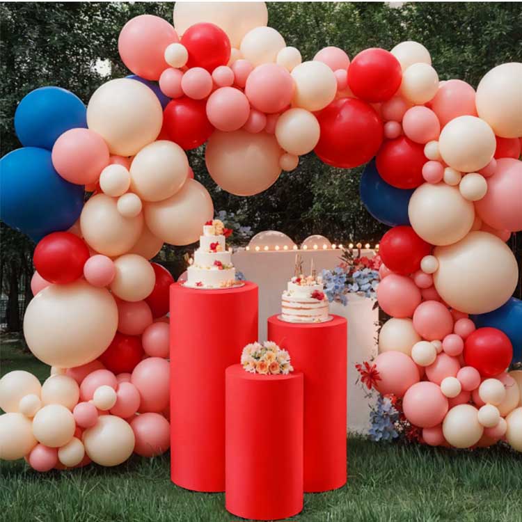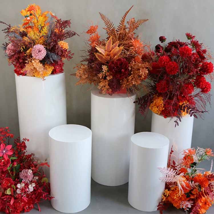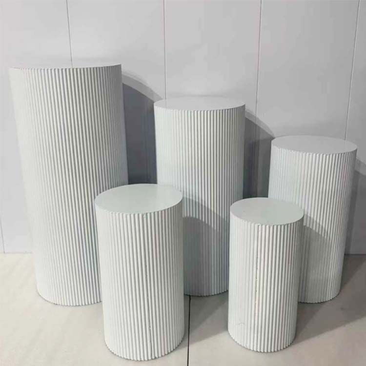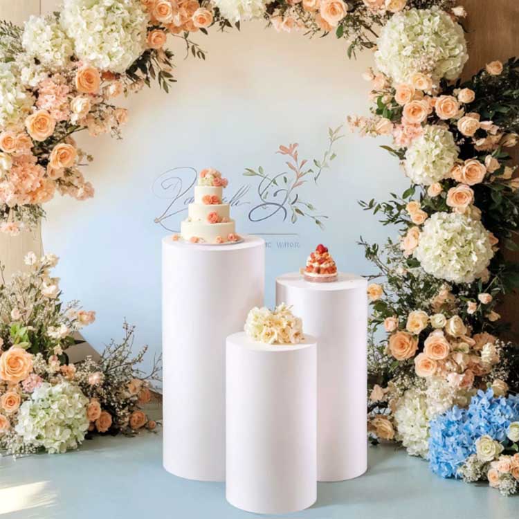 Masa de desert este cilindrică cu suprafețe netede, plane în jurul marginilor. Are o bază mare, un centru de greutate stabil și nu se răsturnează ușor. Este rezistent la coroziune, rezistent la oxidare, solid din punct de vedere structural și are o capacitate portantă puternică. Este disponibil într-o varietate de culori, inclusiv alb fildeș, auriu șampanie și negru vintage.