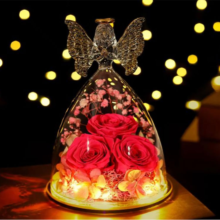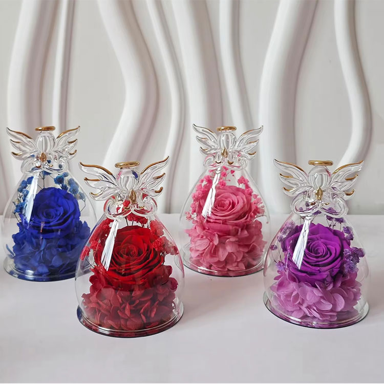 Cadoul nostru de flori conservate de înger de sticlă acceptă OEM și ODM.