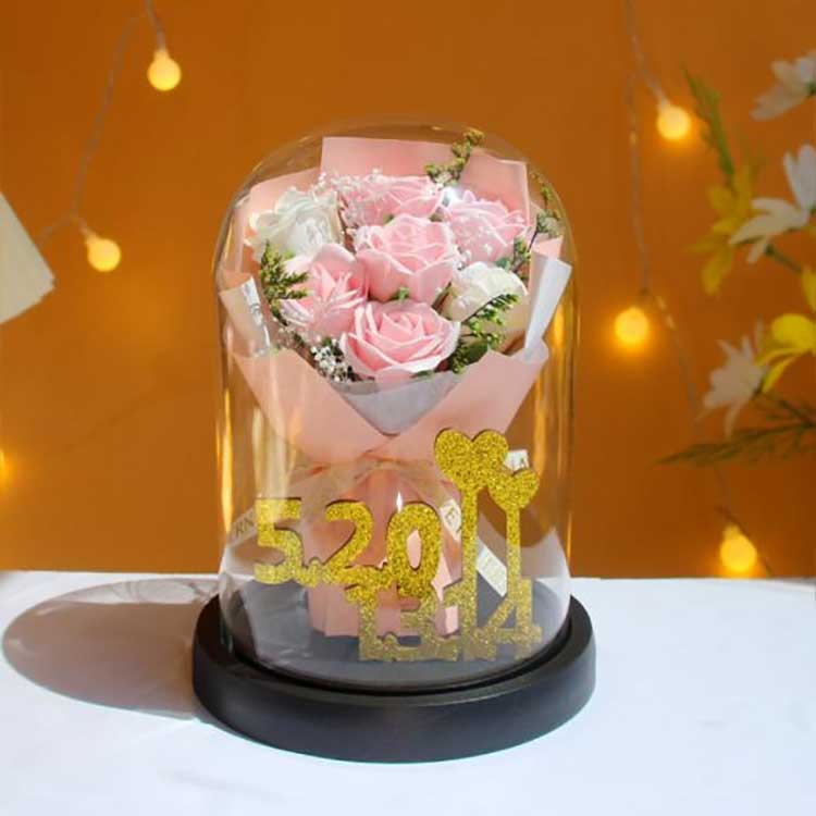 Săpunul nostru de trandafiri acoperit cu sticlă își păstrează culorile vibrante și aspectul natural, în timp ce capacele de sticlă transparente le adaugă o senzație romantică și luxoasă. Oferim o varietate de opțiuni de personalizare: folosind gravarea cu laser și tehnologia de imprimare UV, logo-urile mărcii, mesajele personalizate sau modelele tematice sunt gravate pe sticlă. Culoarea este durabilă, detaliile sunt clare și nu se estompează, ceea ce o face o alegere ideală pentru promovarea publicitară, cadouri de sărbători, cadouri de nuntă sau suveniruri corporative.