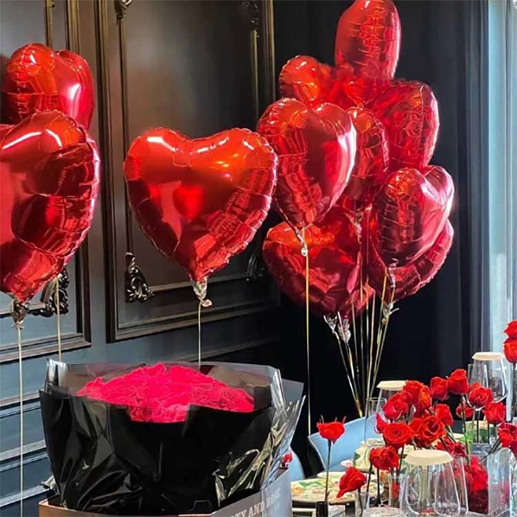 Baloanele din folie de aluminiu în formă de inimă sunt realizate din material de nailon îngroșat, aceste baloane având modele vii imprimate cu cerneluri ecologice. Există 50 de baloane per pachet.