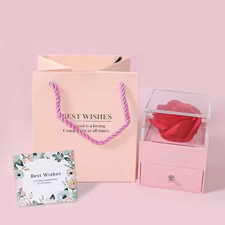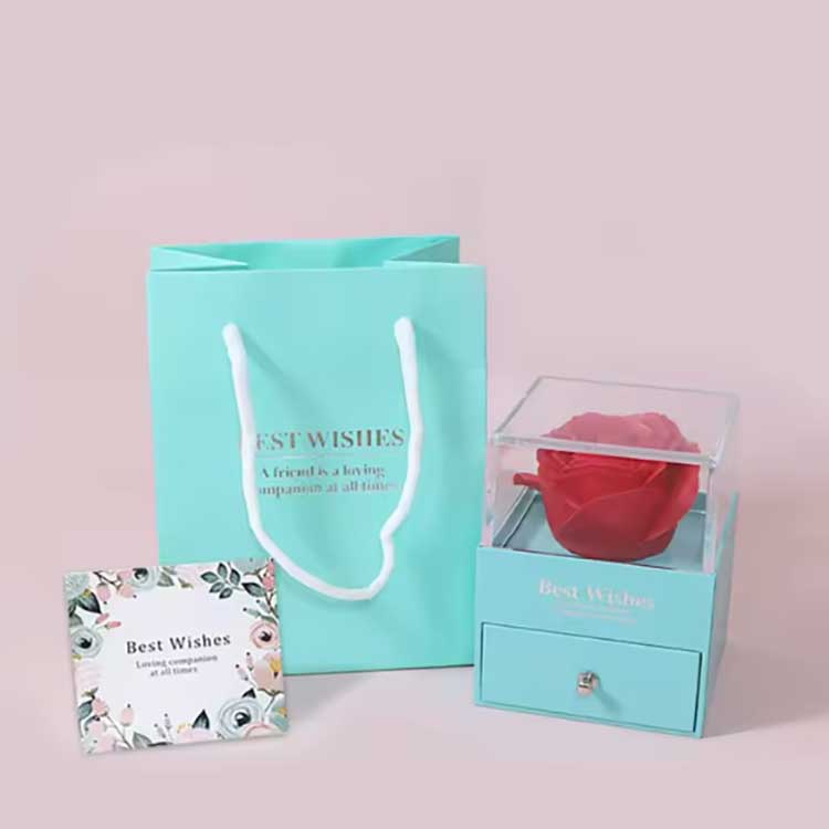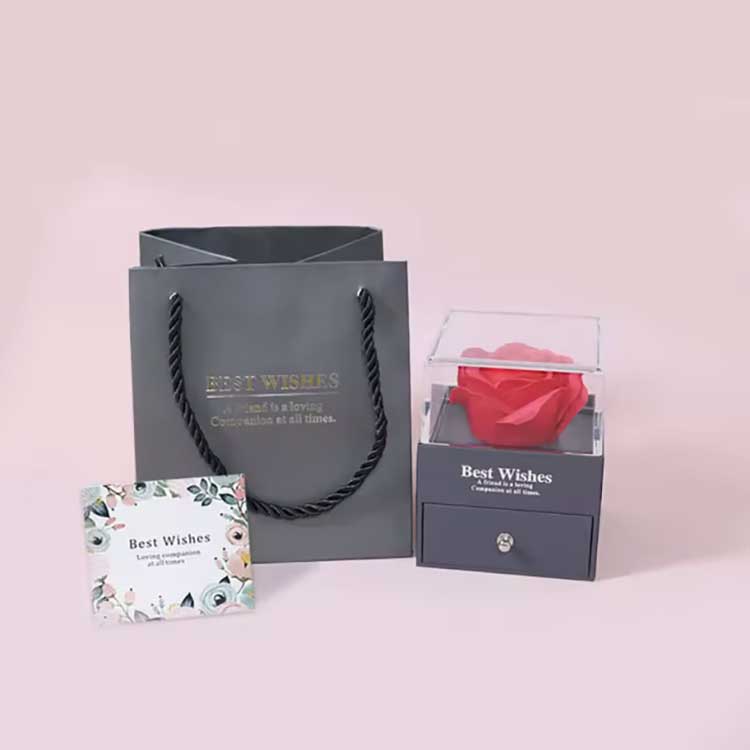 Cutia cadou cu flori nemuritoare este un produs popular. Accesoriile sale sunt realizate din materiale de înaltă calitate. Fiecare set de cutie cadou conține un trandafir strălucitor și bijuterii rafinate. Când le primiți, le puteți folosi direct fără a fi nevoie să le instalați singur. Îți pot exprima pe deplin sentimentele prietenilor sau rudelor tale, făcându-ți ceremonia plină de romantism și surpriză.