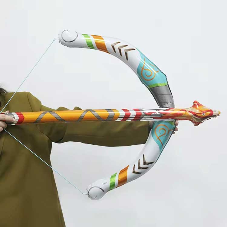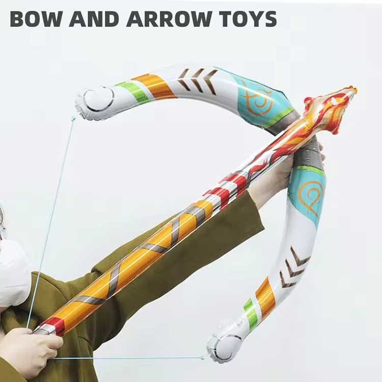 Setul de jucării gonflabile cu arc și săgeți este fabricat din PVC, capabil să reziste la jocul entuziast al copiilor. Se umflă rapid și își păstrează forma mult timp. Include trei săbii pentru o interschimbabilitate mai ușoară.