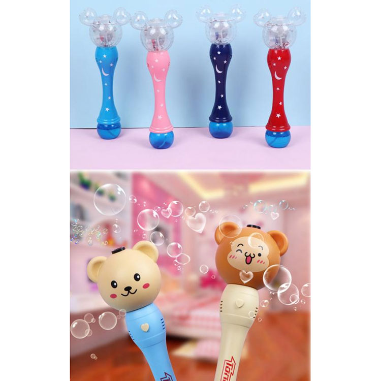 Această mașină electrică cu bule luminoase este echipată cu lumini LED și are un fund circular detașabil pentru ținerea soluției de bule. Când întrerupătorul este pornit, lumina strălucește pe bule, făcându-le să pară colorate. Aparatele cu bule pot fi folosite pentru divertismentul copiilor, precum și pentru decorațiuni de petrecere și spectacole de scenă.