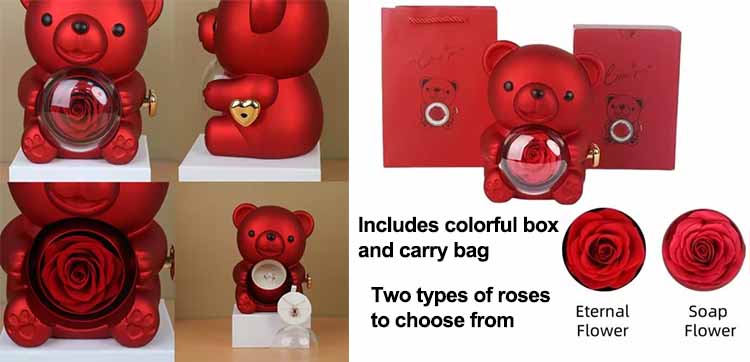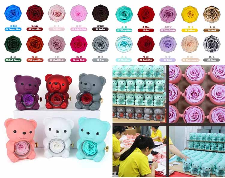 Pentru a proteja eficient ursul de flori conservat de deteriorare în timpul transportului, fiecare urs este ambalat individual cu o căptușeală din spumă care absoarbe șocul și un sac de praf pentru a-l proteja de praf și uzură. Sunt disponibile într-o varietate de culori pentru a se potrivi nevoilor dumneavoastră pentru orice ocazie, creând o experiență cu adevărat specială pentru dumneavoastră.