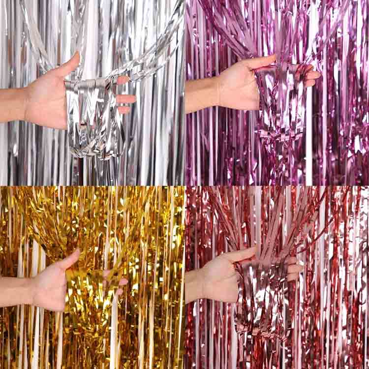 Cortina de ploaie pentru petrecere este făcută din mai multe fire de mătase. După ce a fost agățat, acesta cade și este folosit ca perete de fundal. Este ușor de instalat și puteți alege diferite culori sau tăieturi în funcție de scenă, adăugați decorațiuni etc.