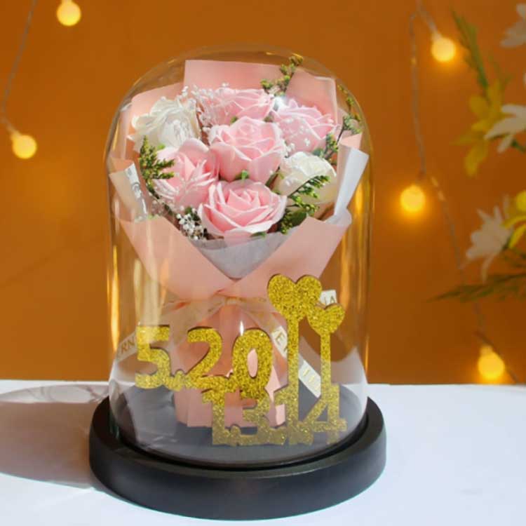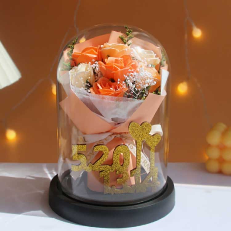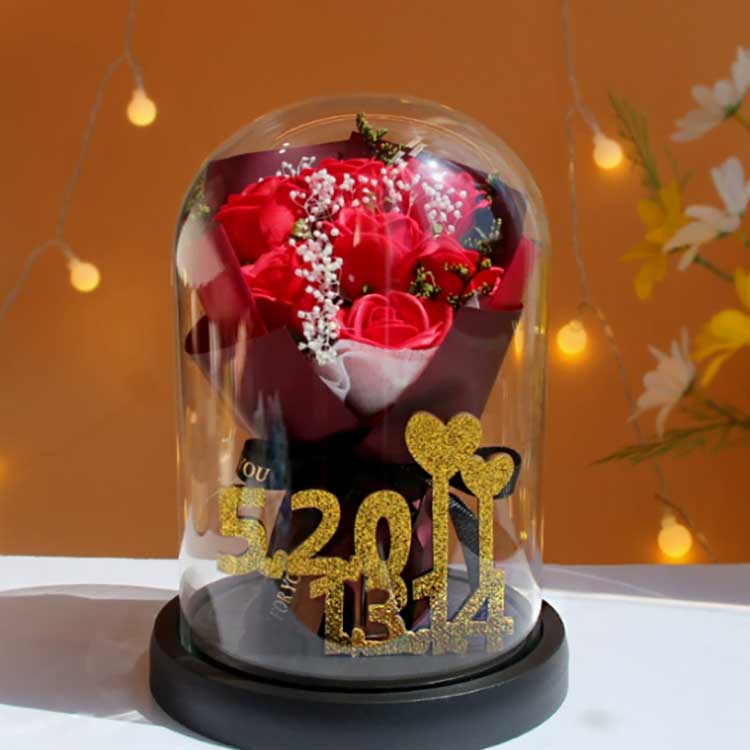 Acest buchet de trandafiri din sticlă este conceput pentru a preveni ofilirea florilor, iar trandafirii din interior nu se vor estompa. Buchetul este foarte realist, aproape se distinge de florile reale și poate prezenta foarte bine frumusețea buchetului. În interior, numerele de aur 520+1314 reprezintă numerele 520 și 1314, simbolizând dragostea și evidențiind chibzuința acestui cadou.